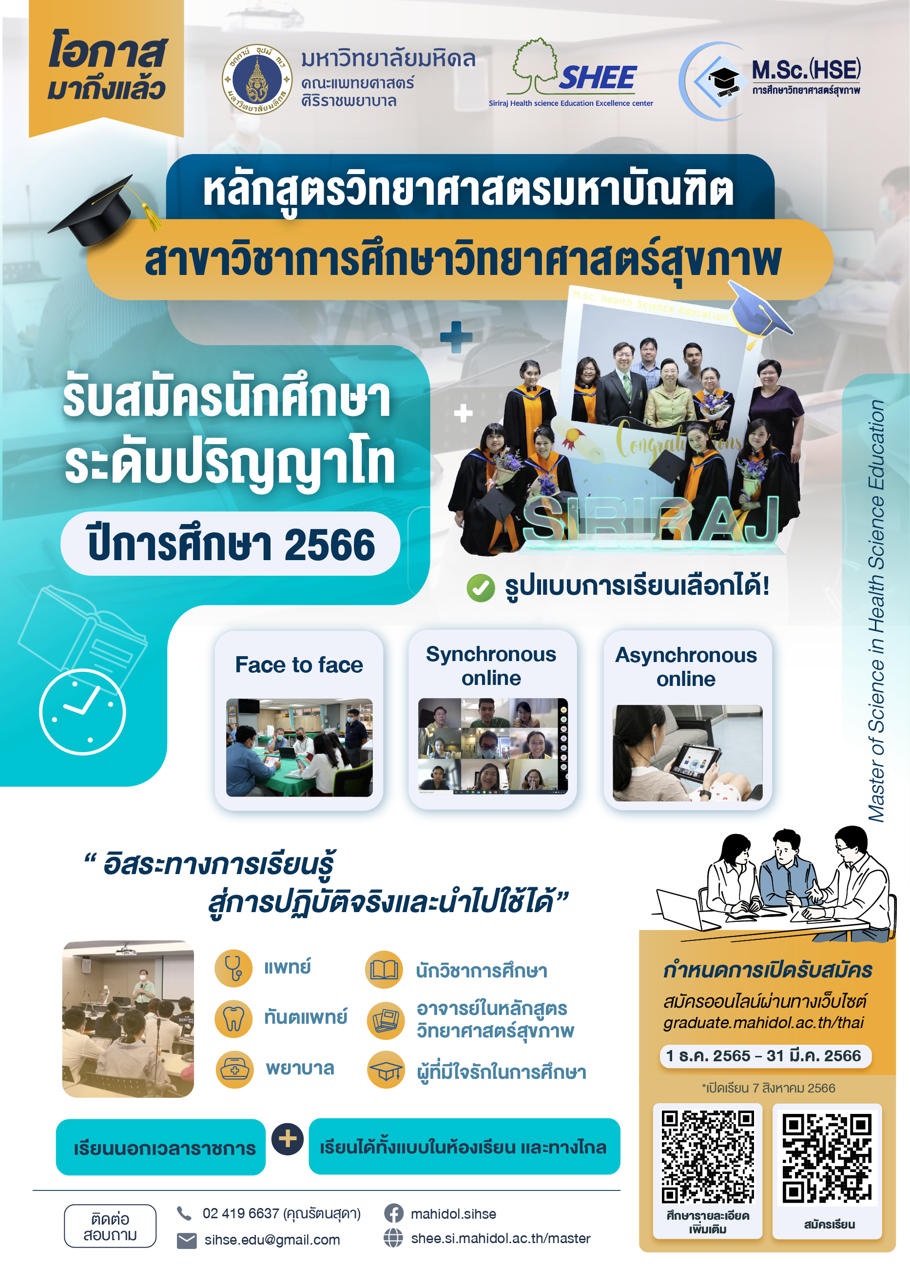 รับสมัครนักศึกษาระดับปริญญาโท ปีการศึกษา2566 หลักสูตรวิทยาศาสตรมหาบัณฑิต สาขาวิชาการศึกษาวิทยาศาสตร์สุขภาพ