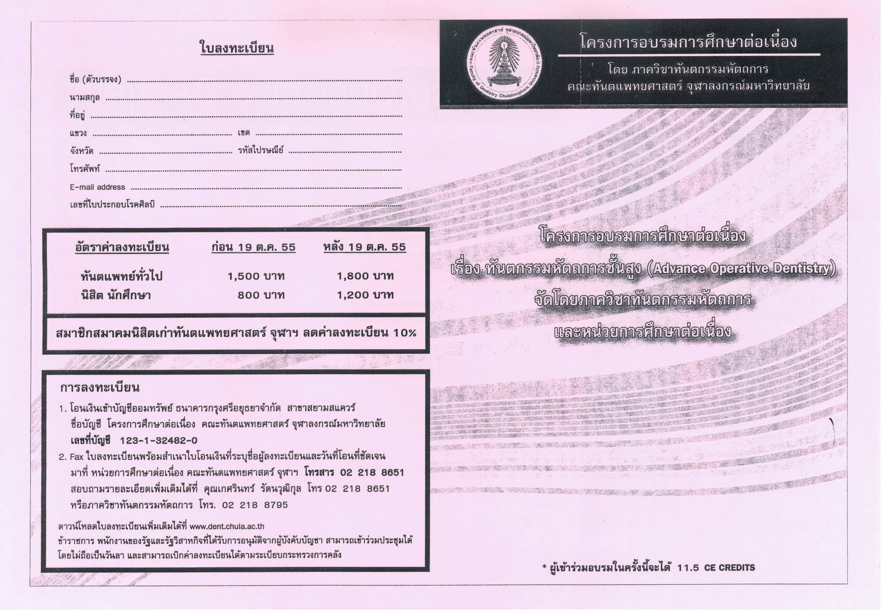ขอความอนุเคราะห์ประชาสัมพันธ์โครงการอบรมวิชาการ เรื่อง "๕ ยาที่เกี่ยวข้องกับงานทันตกรรม"