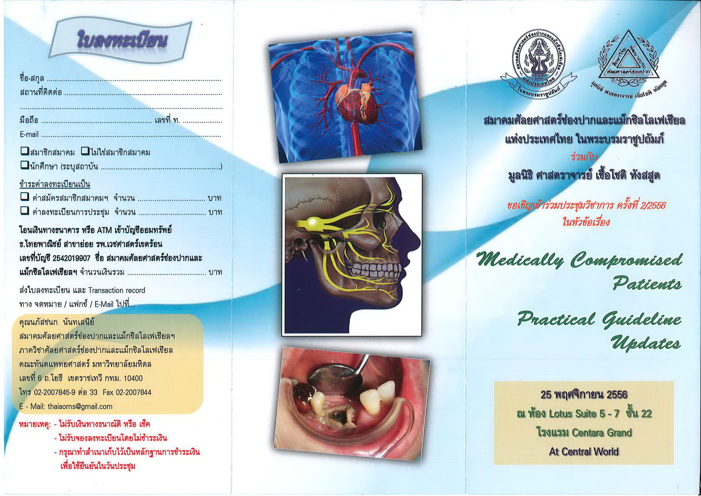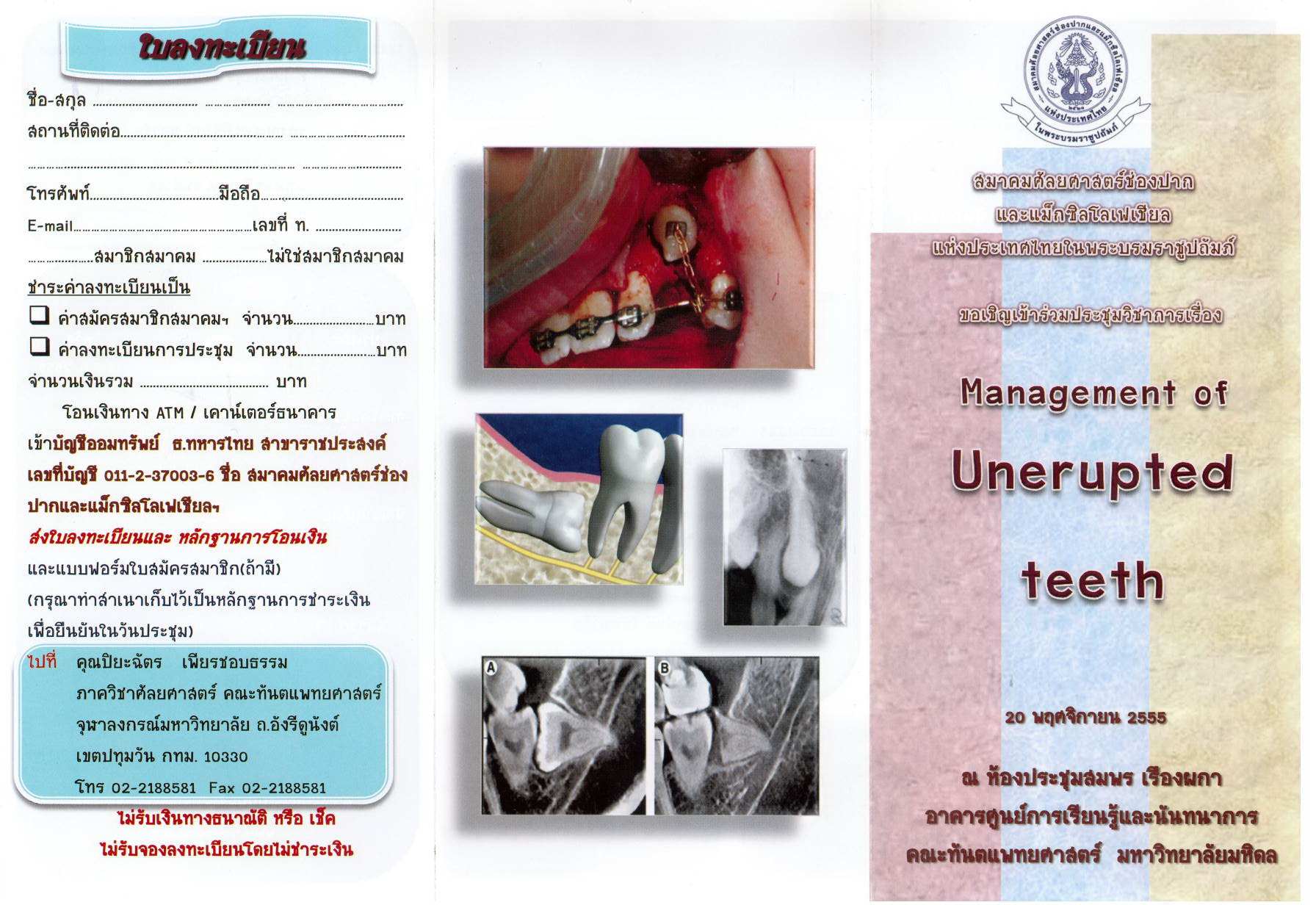 ขอความอนุเคราะห์ประชาสัมพันธ์โครงการอบรมวิชาการ เรื่อง "ศัลยกรรมในช่องปากที่เกี่ยวข้องกับทันตกรรมจัดฟัน"