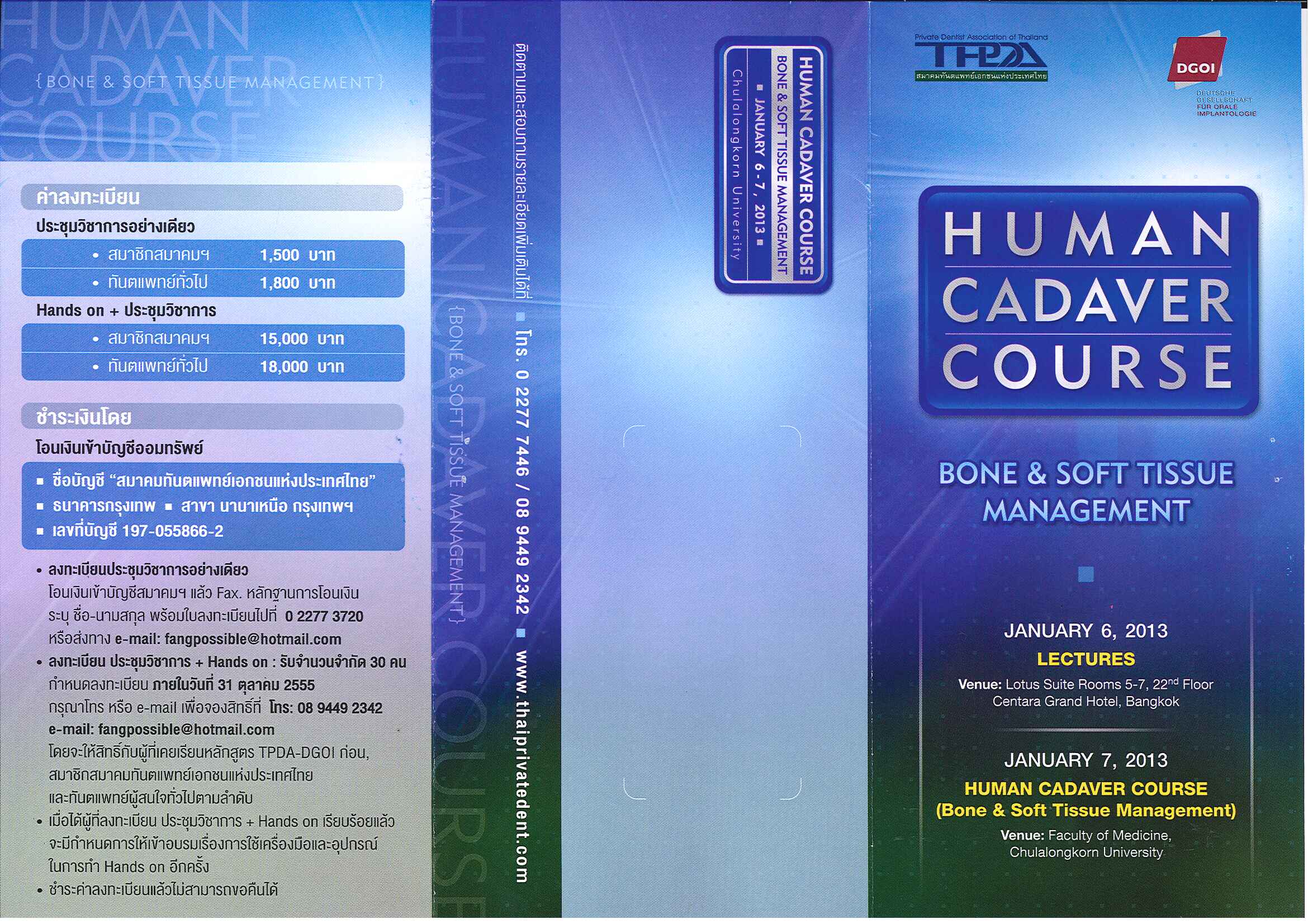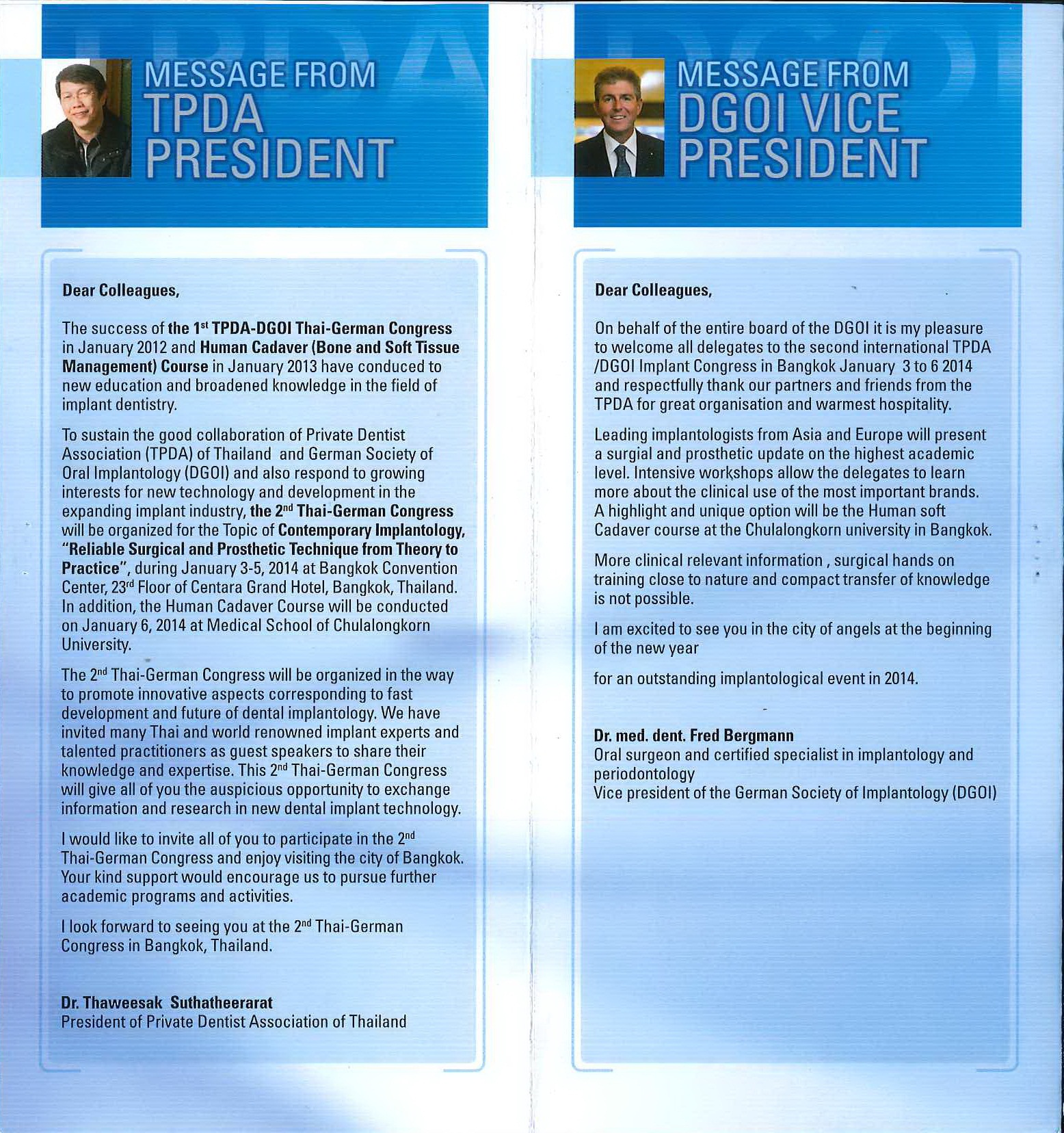 ขอเชิญทันตแพทย์ที่สนใจเข้าร่วมประชุมวิชาการ The 5th Thai-German Dental Congress ในหัวข้อเรื่อง "Esthetic and Implantology: Integrated Biology and Digital Dentistry" ในวันที่ 8 - 10 มกราคม 2563 ณ ศูนย์ประชุมนานาชาติเอ็มเพรส โรงแรมดิเอ็มเพรส จังหวัดเชียงใหม่