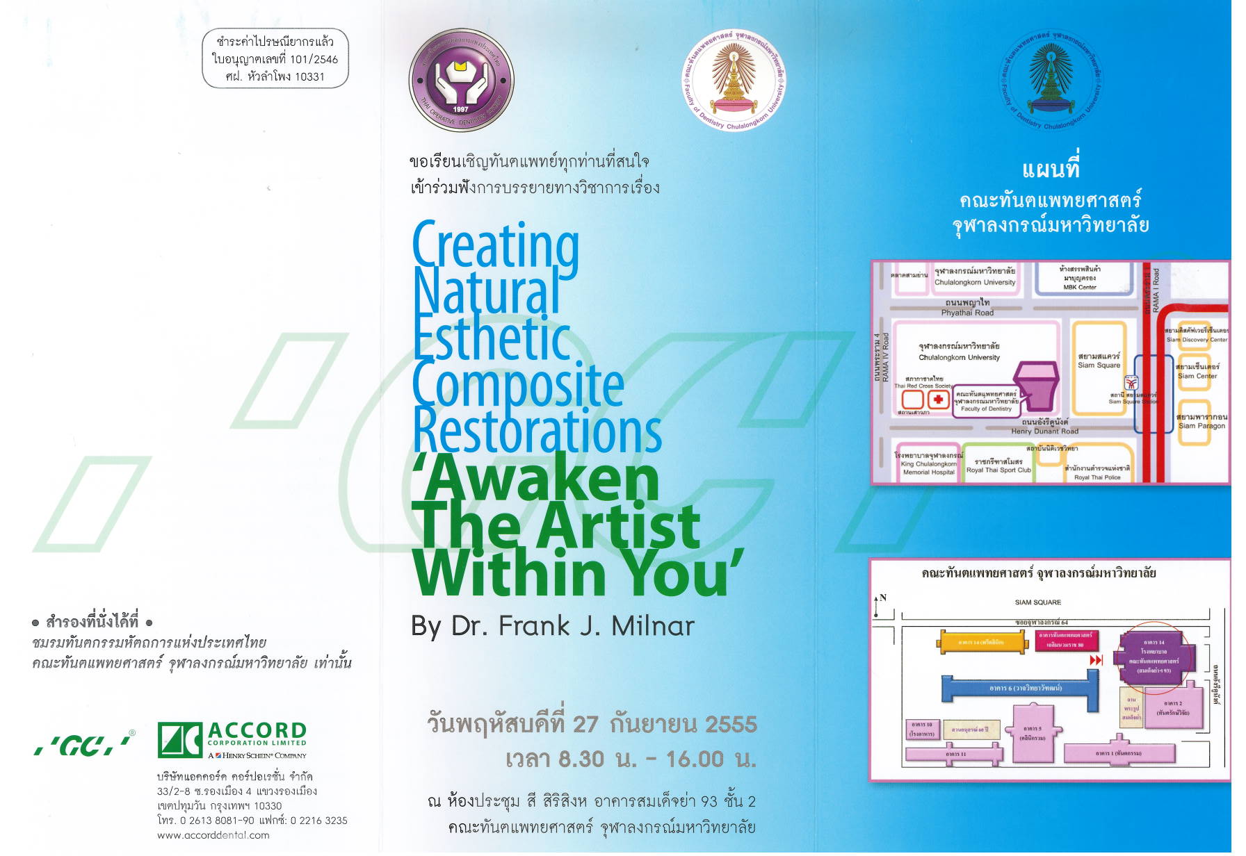 ประชาสัมพันธ์ โครงการศึกษาต่อเนื่อง เรื่อง" The 4 MU Ortho Symposium : Obyssey Of Orthodontic Materials"