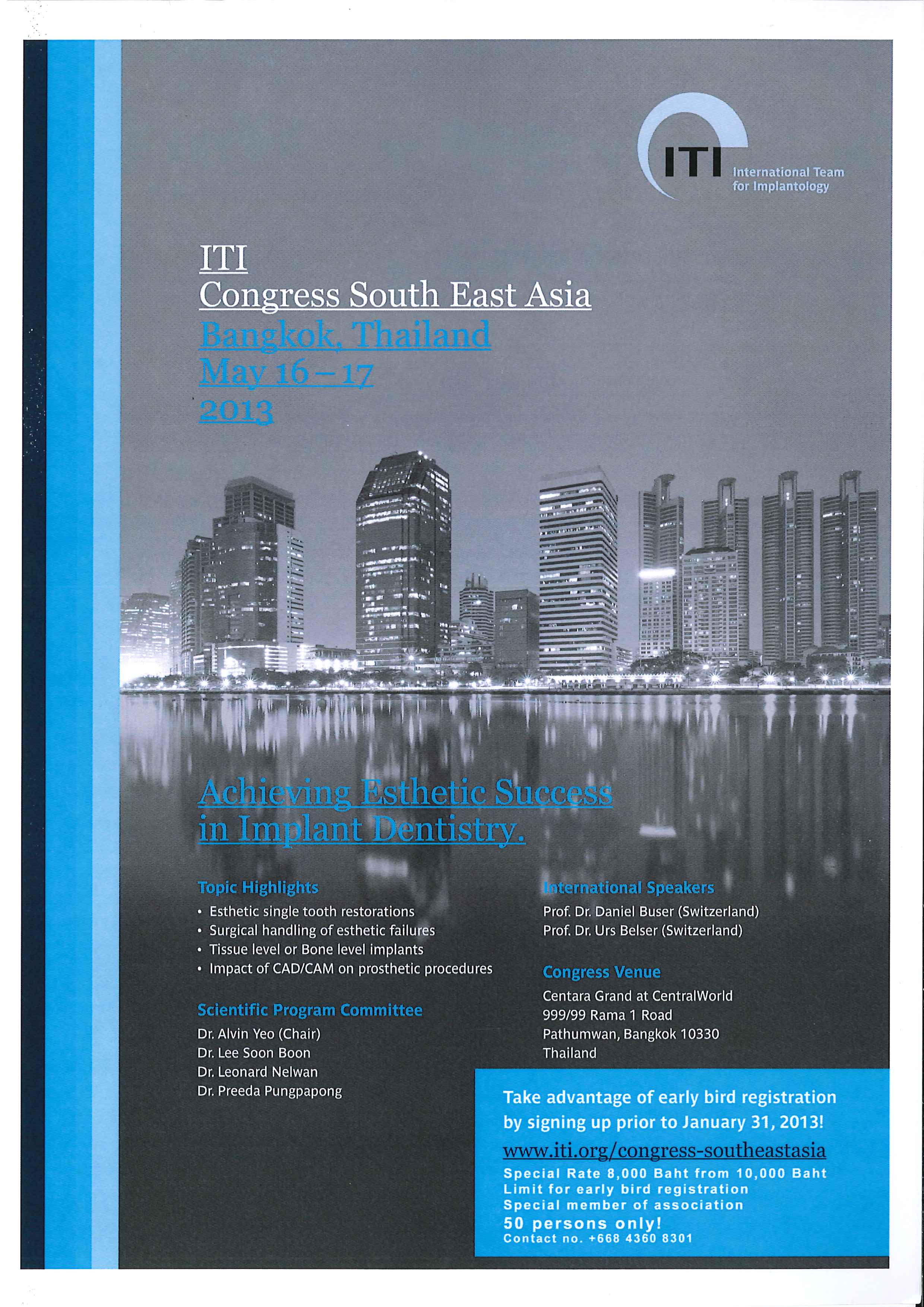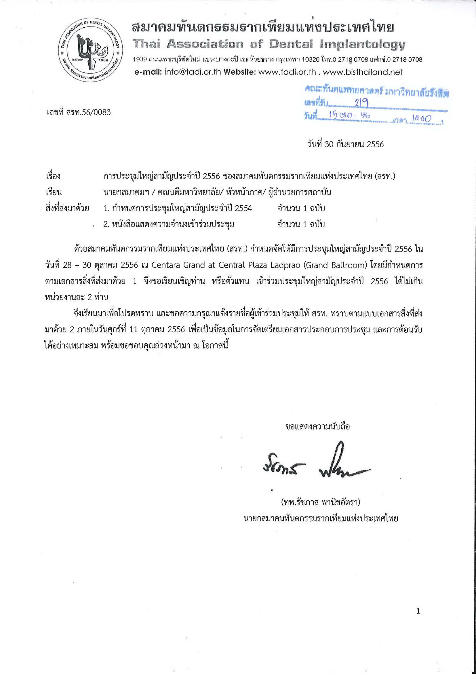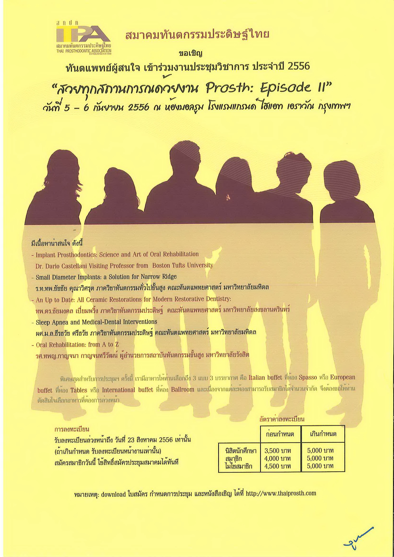 ขอเชิญเข้าร่วมงานประชุมวิชาการทันตกรรมรากเทียมนานาชาติ ครั้งที่ 5 ในหัวข้อเรื่อง "The Conquest of Implant Complications" ระหว่างวันที่ 27-29 พฤศจิการยน 2562 ณ รอยัล พารากอน ฮอล์ ชั้น 5