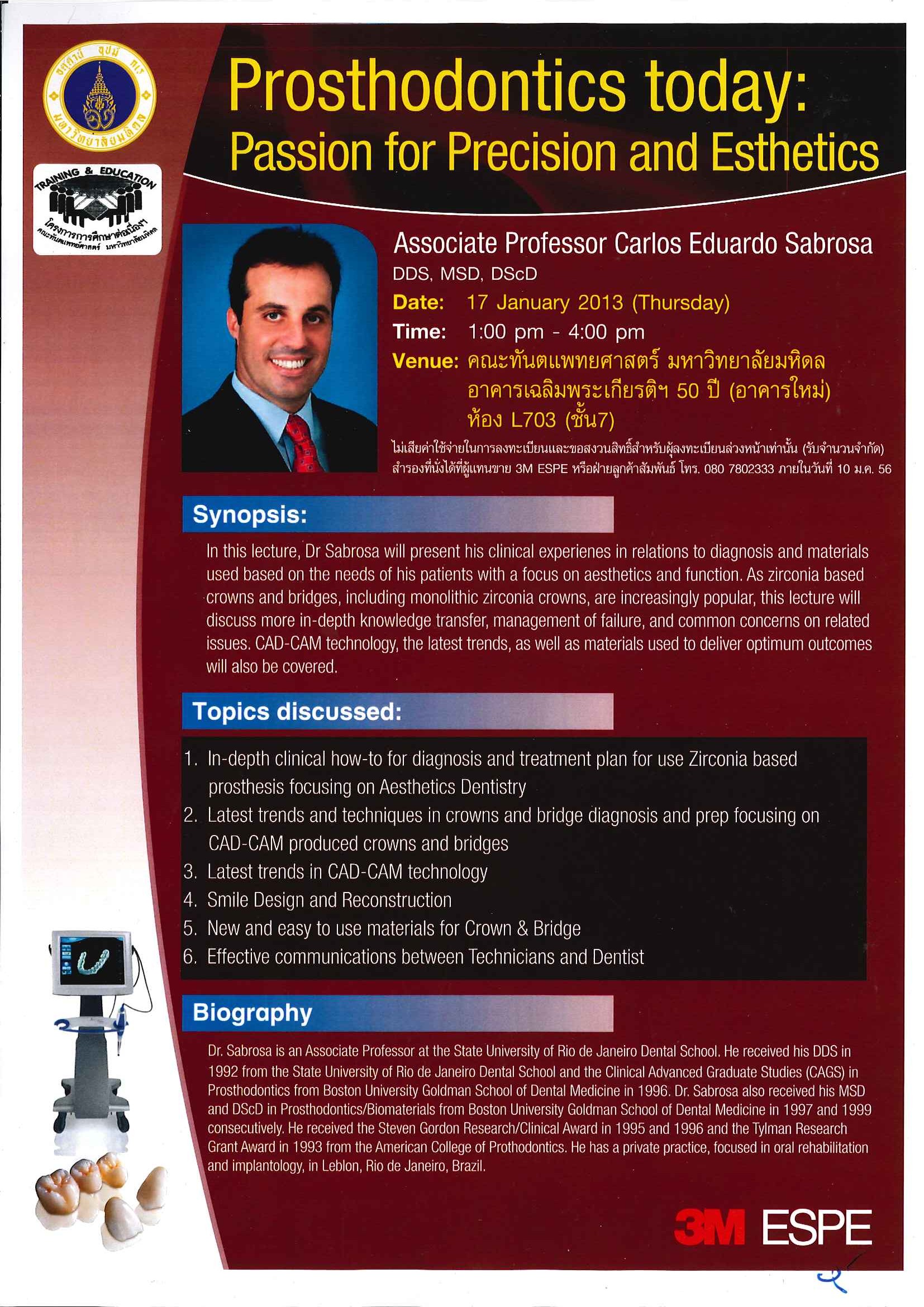 โครงการประชุมวิชาการเรื่อง "The Past Present and Future of Restorative Dentistry" วันที่ 11-12 มกราคม 2567 ณ ศูนย์ประชุมนานาชาติเอ็มเพรส โรงแรมดิเอ็มเพรส จังหวัดเชียงใหม่ วันที่ 11-12 มกราคม 2567 ณ ศูนย์ประชุมนานาชาติเอ็มเพรส โรงแรมดิเอ็มเพรส จังหวัดเชียงใหม่