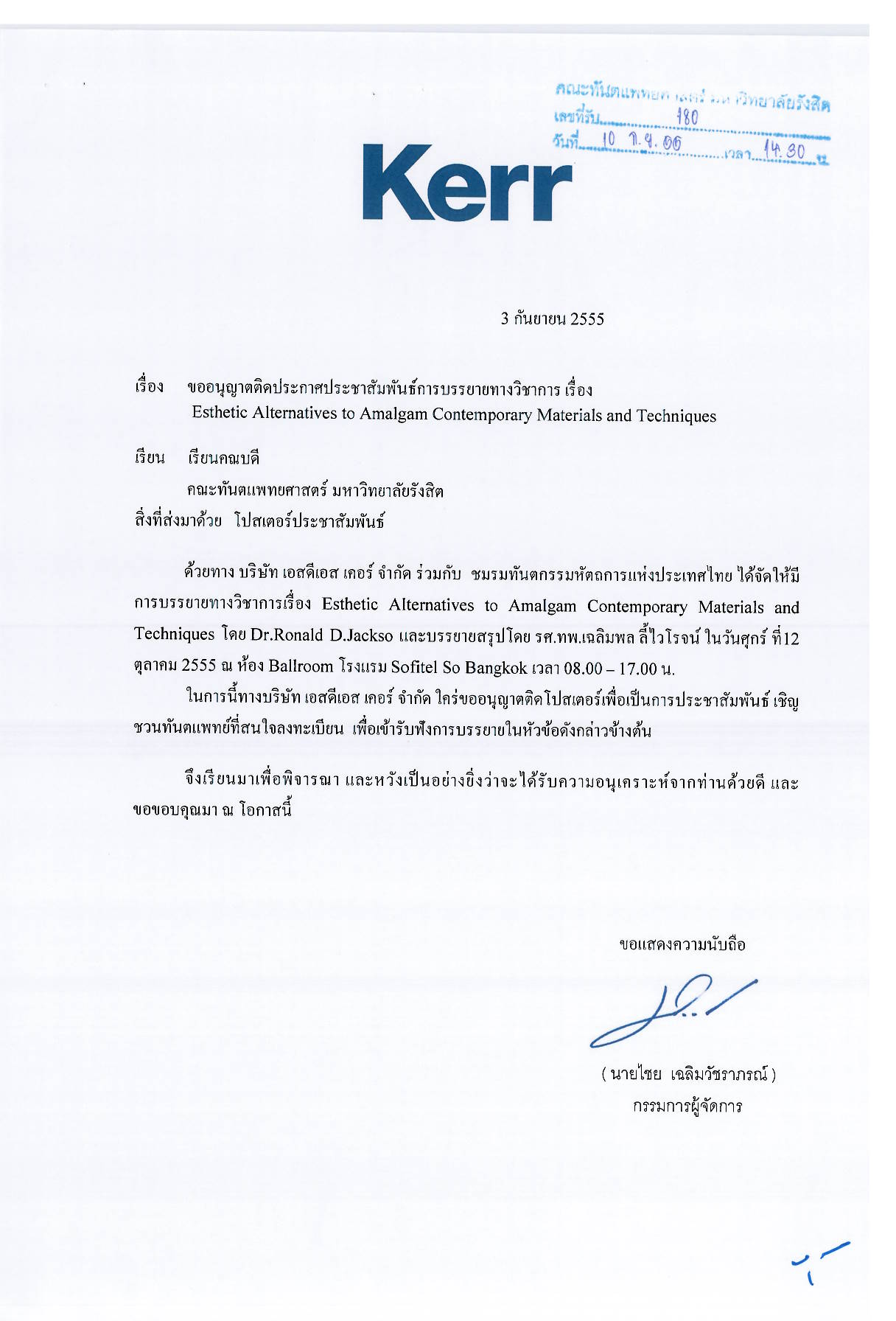 สมาคมศิษย์เก่าทันตแพทย์เชียงใหม่ เรื่อง ขอความอนุเคราะห์ประชาสัมพันธ์และขอเรียนเชิญทันตแพทย์เข้าร่วมประชุมวิชาการ