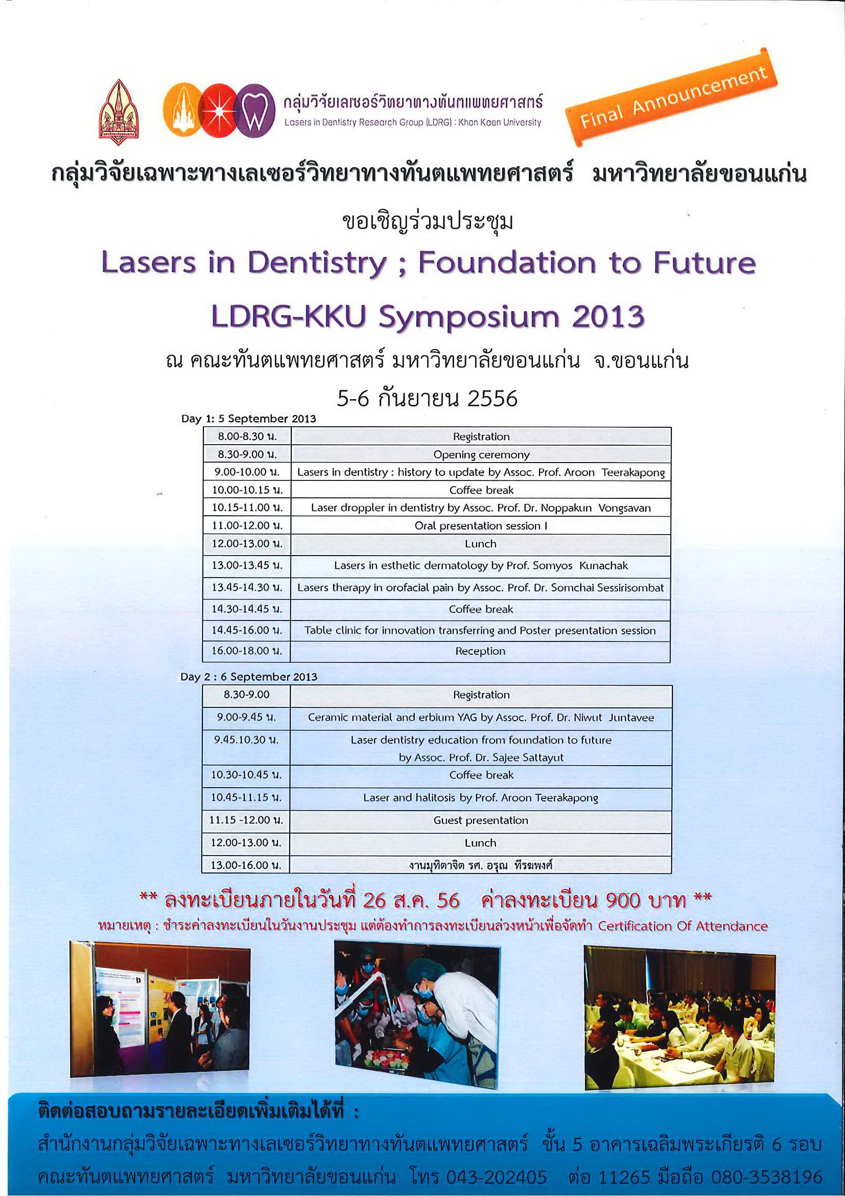 การประชุมวิชาการ สัญจร ประจำปี 2567 โดยราชวิทยาลัยทันตแพทย์แห่งประเทศไทย ร่วมกับ คณะทันตแพทยศาสตร์ มหาวิทยาลัยขอนแก่น วันที่ 31 ตุลาคม - 1 พฤศจิกายน 2567 ณ โรงแรมพูลแมน ราชา ออคิด จังหวัดขอนแก่น