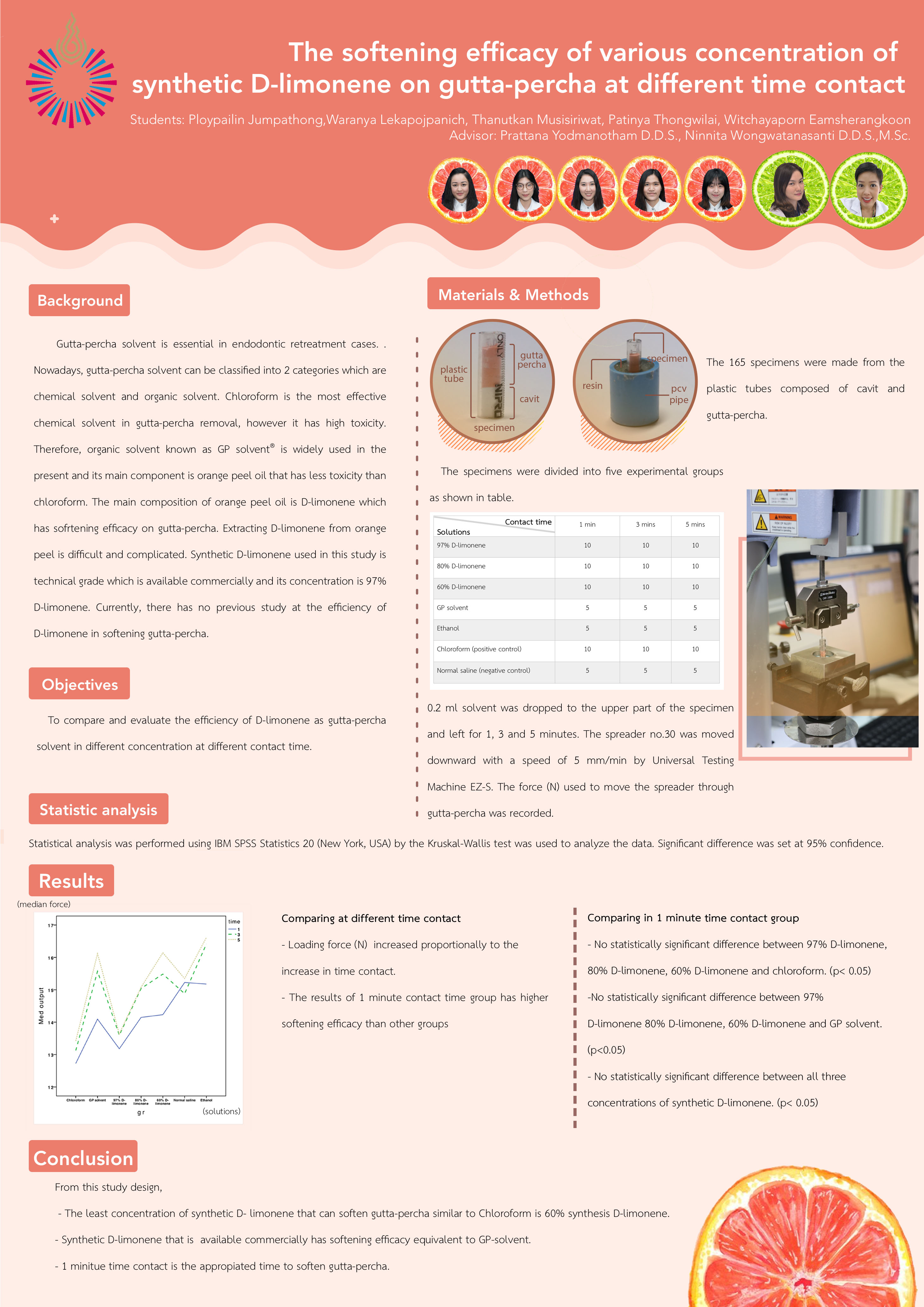 The softening efficacy of various concentration of synthetic D-limonene on gutta-percha at differentThe softening efficacy of various concentration of synthetic D-limonene on gutta-percha at differenttime contact. Poster |