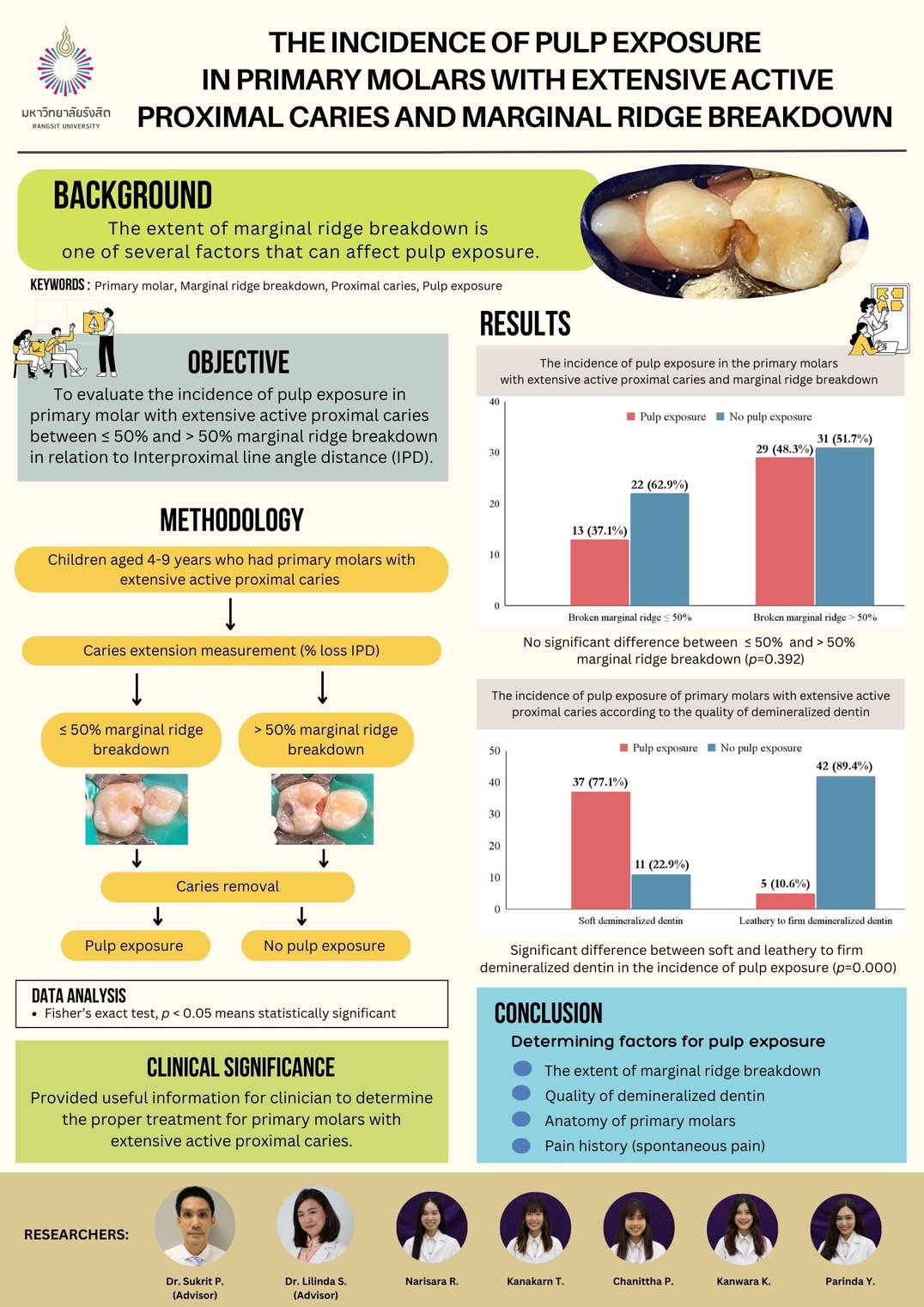 The incidence of pulp exposure in primary molar with extensive active proximal caries and marginal ridge breakdown. Poster |