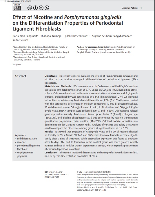 | 33. | Title | : | Effect of Nicotine and Porphyromonas gingivalis on the Differentiation Properties of Periodontal Ligament Fibroblasts abstract, full text | ||
